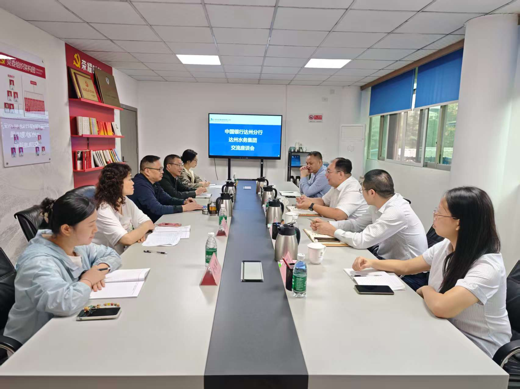 2025年9月23日上午,達(dá)州水務(wù)集團(tuán)與中國銀行達(dá)州分行成功舉行銀企交流座談會(huì)。集團(tuán)黨委書記、董事長盧輝,黨委委員、副總經(jīng)理兼財(cái)務(wù)總監(jiān)朱亞成;中國銀行達(dá)州分行黨委書記、行長王歡,副行長吳波等參加會(huì)議。雙方重點(diǎn)圍繞深化戰(zhàn)略合作、推動(dòng)互利共贏、助力地方民生與經(jīng)濟(jì)發(fā)展等方面進(jìn)行了深入交流。